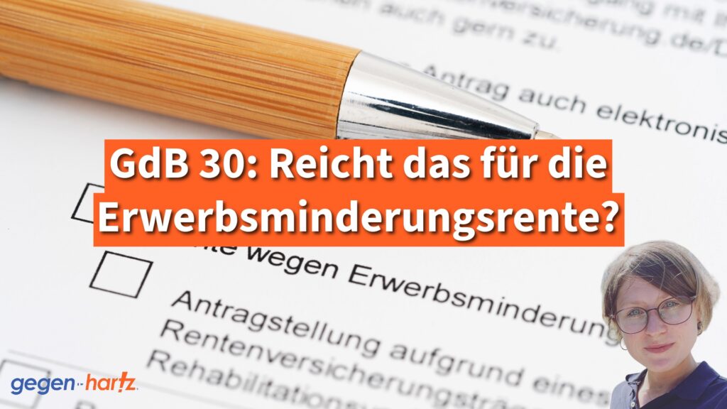 Bei einem GdB von 30 spielt häufig weniger die Erwerbsminderungsrente eine Rolle als vielmehr die Möglichkeit der Gleichstellung mit schwerbehinderten Menschen. Diese kann bei der Agentur für Arbeit beantragt werden, wenn wegen der Behinderung der Arbeitsplatz gefährdet ist oder ein geeigneter Arbeitsplatz sonst nicht erlangt werden kann.