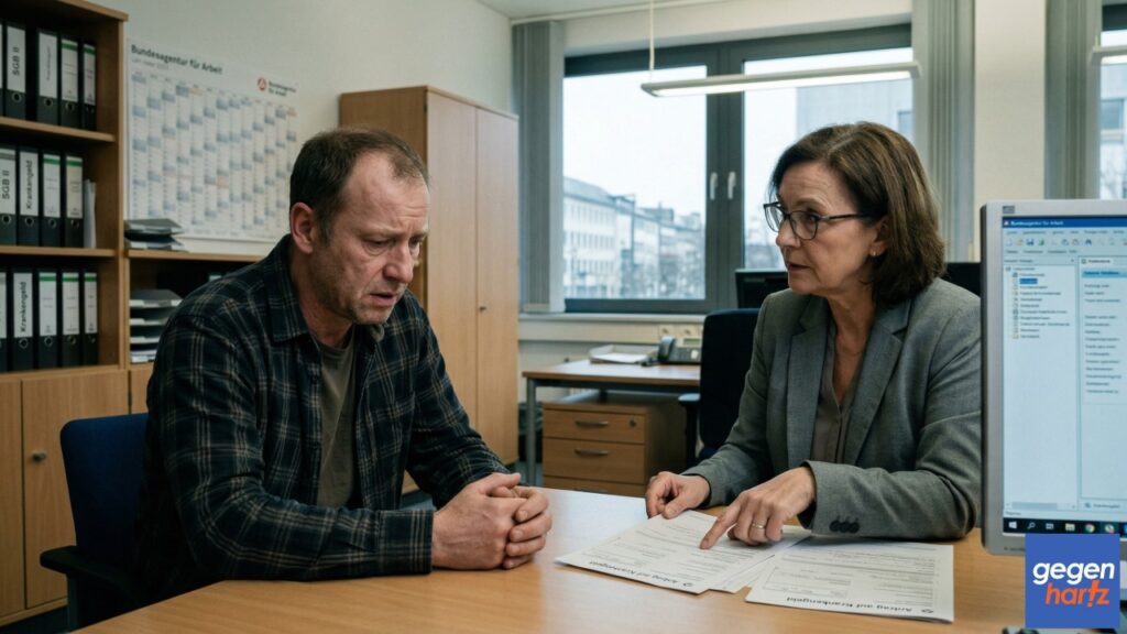 Ein zweites Praxisproblem betrifft Zehntausende: Die Deutsche Rentenversicherung lehnt den Antrag auf Erwerbsminderungsrente ab. Der Betroffene legt Widerspruch ein oder klagt. Und in der Zwischenzeit stellt die Agentur für Arbeit die Nahtlosigkeitsleistung ein – mit der Begründung, die Erwerbsminderung sei ja nicht festgestellt worden, also müsse sich der Betroffene dem Arbeitsmarkt in vollem Umfang zur Verfügung stellen.